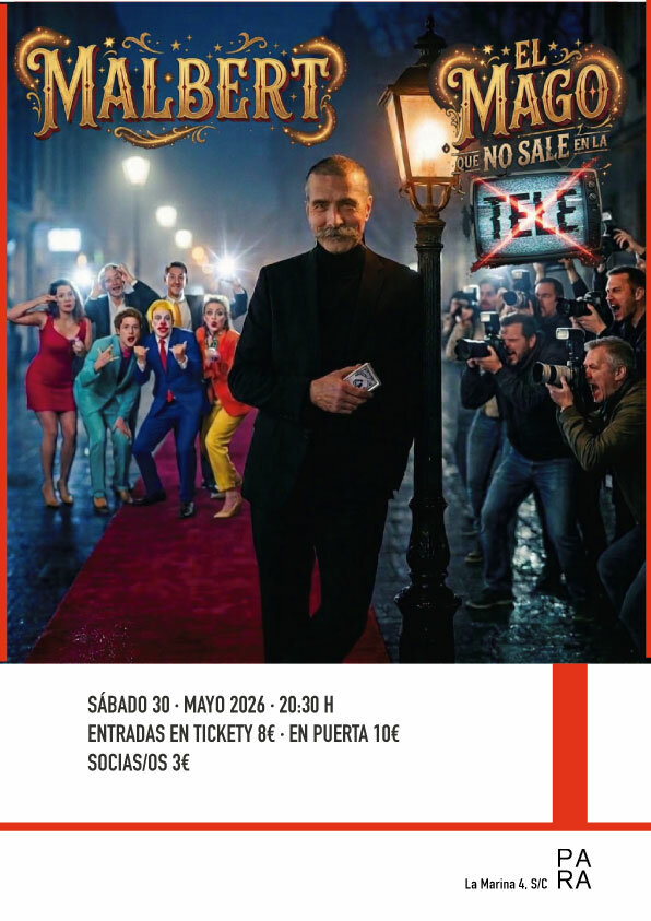Hay magos que salen en la tele… y luego está Malbert. "El mago que no sale en la tele 2.0" es la evolución del espectáculo que ha conquistado al público desde la cercanía, el humor y una magia que no necesita filtros ni cámaras para sorprender. Un show renovado, más directo, más afilado y más Malbert que nunca. Premiado por su originalidad y nominado a Mejor Show de Magia por el Teatro de Barcelona, Malbert regresa con una propuesta donde la risa, la improvisación y lo imposible se mezclan en cada minuto. Aquí no hay trucos editados, ni público preparado, ni aplausos enlatados. Aquí hay verdad, talento y un artista que ha demostrado que para brillar no hace falta salir en la tele. "El mago que no sale en la tele 2.0" no se ve… se vive.